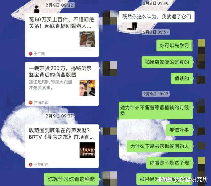来自广东的Haha告诉惊蛰研究所,她的父亲近年来沉迷于直播间买买买,从声称价值十几万的国产手表到文玩古钱币,以及与传统文化、文人雅士牢牢绑定的沉香,均有涉猎。
