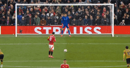第13分钟,卡塞米罗过顶长传,B费插上传中,霍伊伦包抄射门被祖贝迪亚铲倒,裁判同样判罚点球,B费主罚点球稳稳命中。