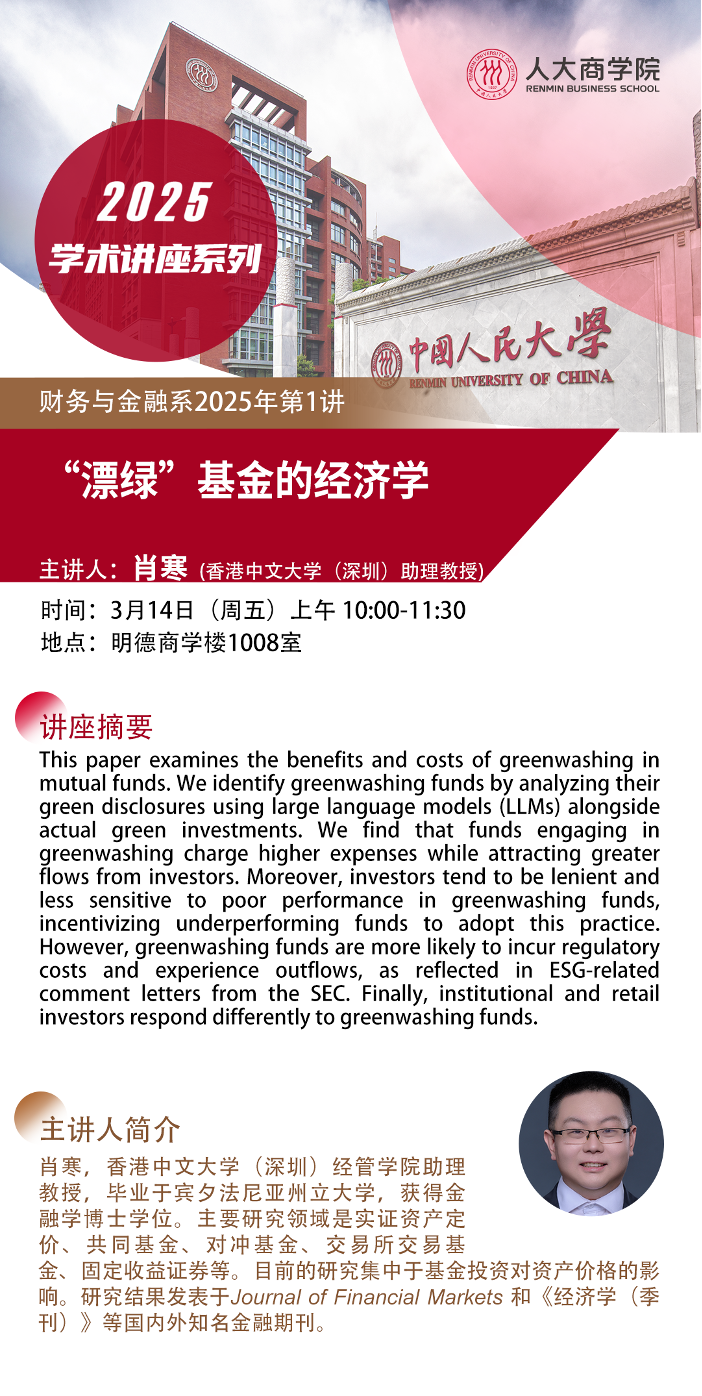 主讲人:肖寒【香港中文大学(深圳)经管学院助理教授】