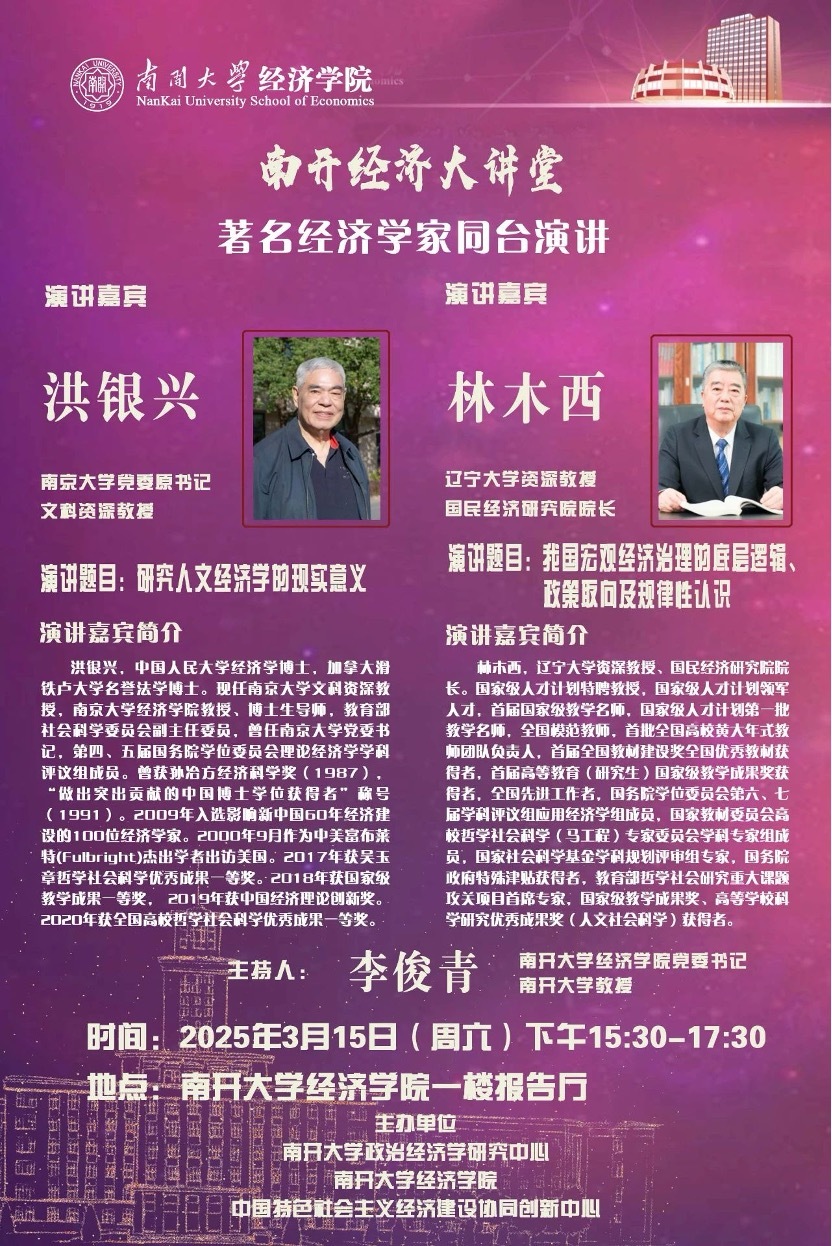 参与方式:南开大学经济学院一楼报告厅