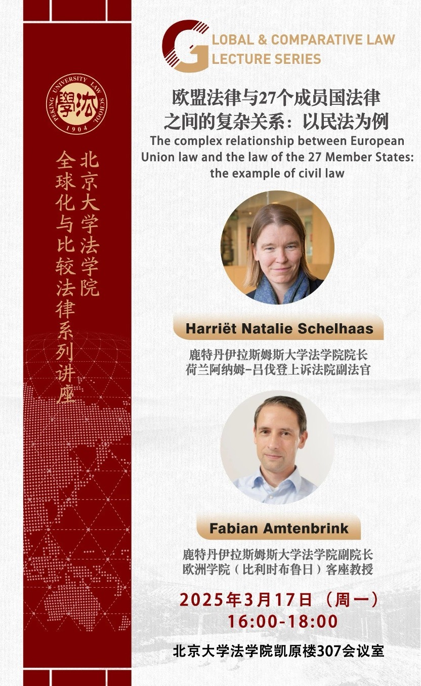 主讲人:Harriët Natalie Schelhaas(荷兰鹿特丹伊拉斯姆斯大学法学院院长,教授),Fabian Amtenbrink(荷兰鹿特丹伊拉斯姆斯大学法学院副院长,教授)