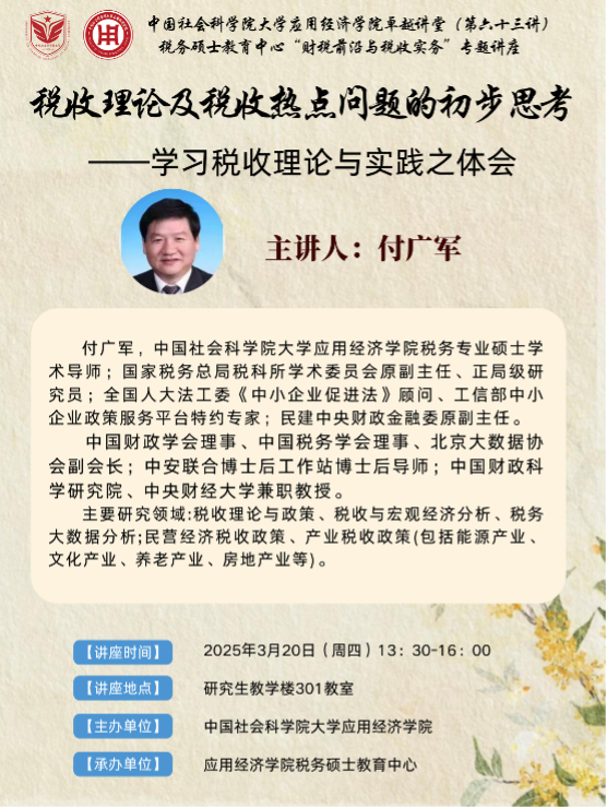 主讲人:付广军(中国社会科学院大学应用经济学院税务专业硕士学术导师,中国财政科学研究院、中央财经大学兼职教授)
