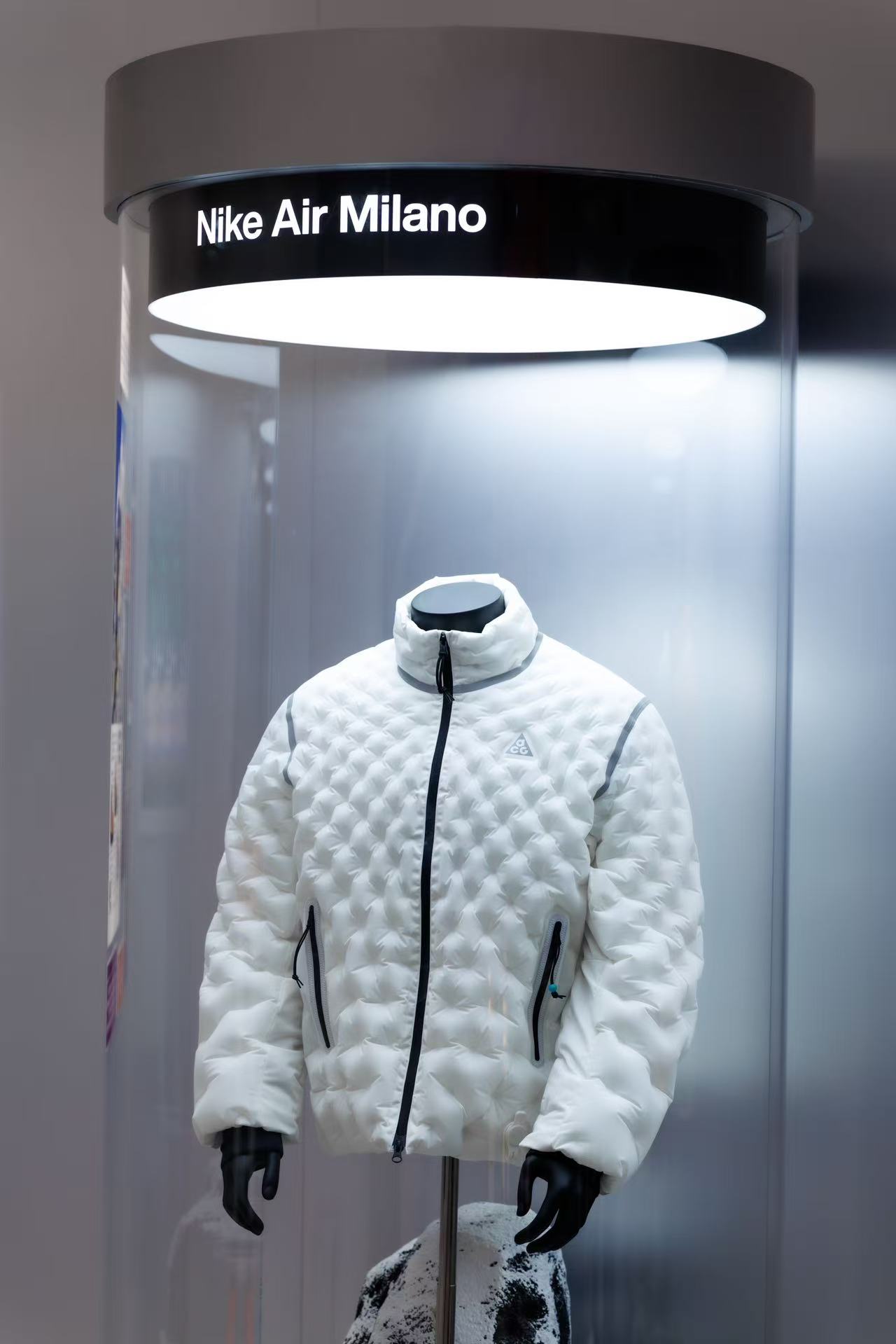 在进博会的耐克展台上,展示着市面上不曾出售的创新产品。比如,看起来蓬松的白色运动夹克使用了A.I.R. 技术,运动员只要按需求调整服装内的充气量,即可实时掌控保暖程度,实现 “一件衣服可应对多种天气”。