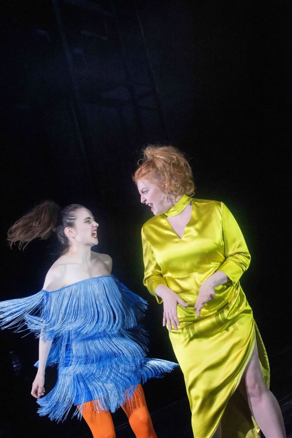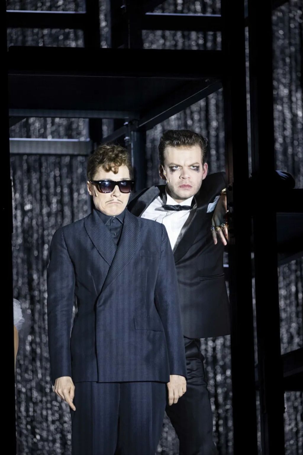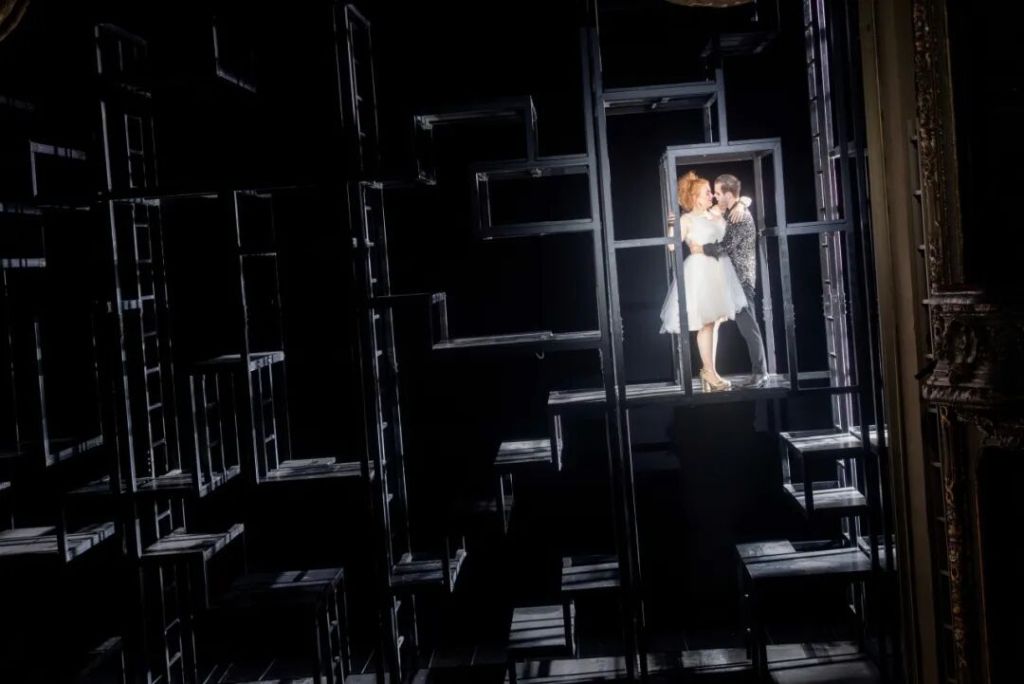 对于舞台设计,里斯描述其为“用冷硬金属构筑的一座迷宫般的几何格子间”,这一设计既象征荒诞世界的骨架,也暗示规则与秩序的伪装。科斯基让乐队在现场演奏的同时,扮演坐在台下的“街头硬汉”,与台上演员共同参与叙事,这种安排使得音乐上的“间离”与剧情中的“出其不意”形成互文。