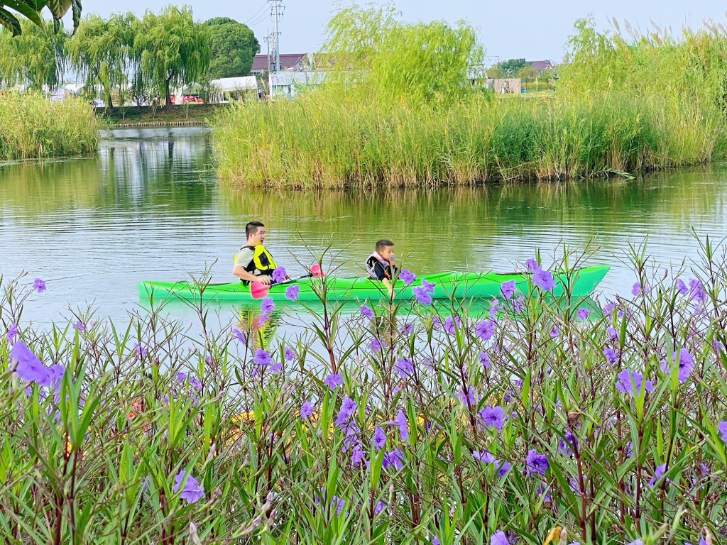 漕泾镇水库村“水窠里”景区因为河网密布、水质优良,吸引了不少亲子家庭体验水上运动。 澎湃新闻记者 俞凯 摄