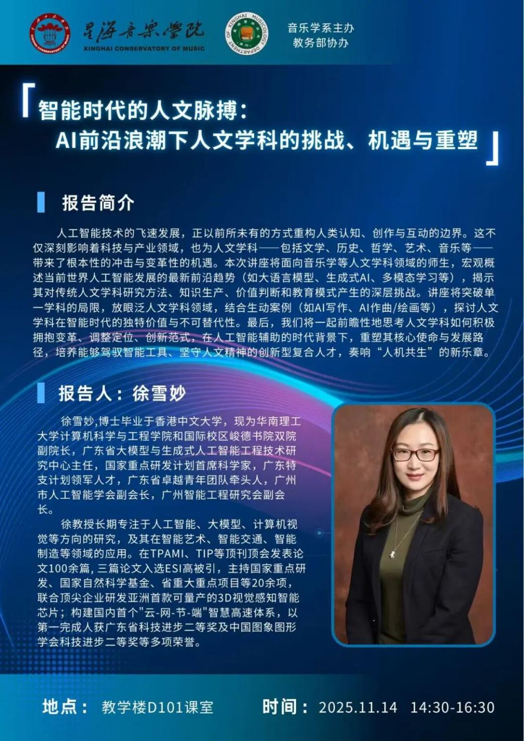 主讲人:徐雪妙(华南理工大学计算机科学与工程学院副院长、国际校区峻德书院副院长)