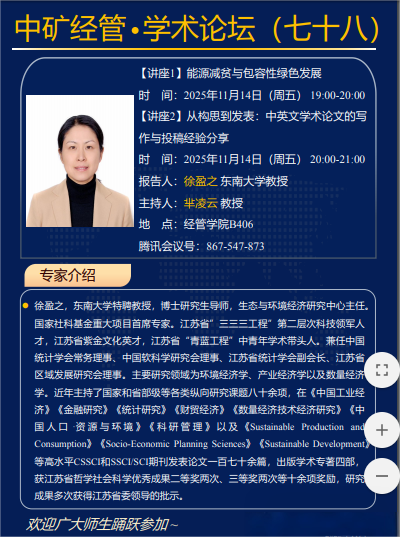 主讲人:徐盈之(东南大学特聘教授、博士生导师)