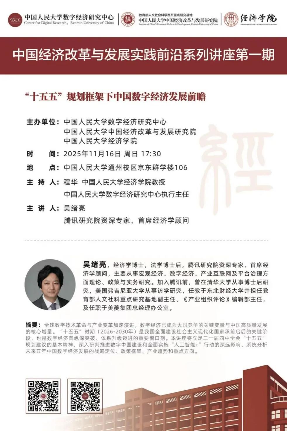 主办:中国人民大学数字经济研究中心、中国人民大学中国经济改革与发展研究院、中国人民大学经济学院