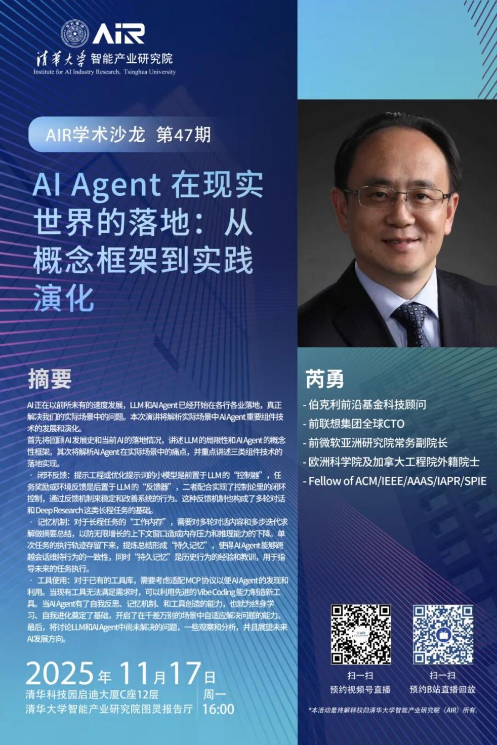 参与方式:清华大学智能产业研究院图灵报告厅或扫码观看