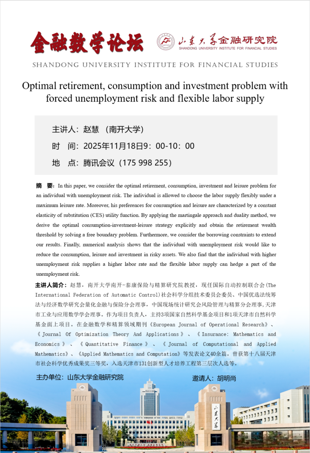 主讲人:赵慧(南开大学南开-泰康保险与精算研究院教授)