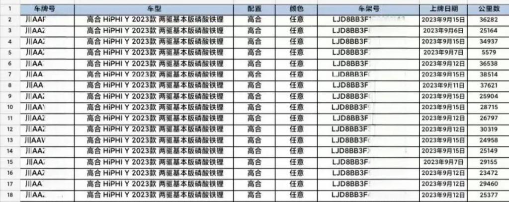 二手车商提供的部分高合车型货源 图片来源:受访者提供