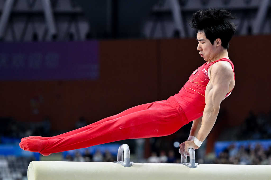 首页 > 资讯 肖若腾夺得全运会体操男子个人全能冠军,张博恒失误获银 11月14日,北京队选手肖若腾(左)与湖南队选手张博恒(右二)在赛后握手。肖若腾夺得男子个人全能冠军。11月14日,第十五届全国运动会体操项目男子个人全能决赛在广东肇庆举行。湖南队张博恒最后一项单杠出现失误,六项总分83.397分获得银牌,北京队肖若腾84.531分夺金,浙江队杨皓楠获得铜牌。肖若腾张博恒