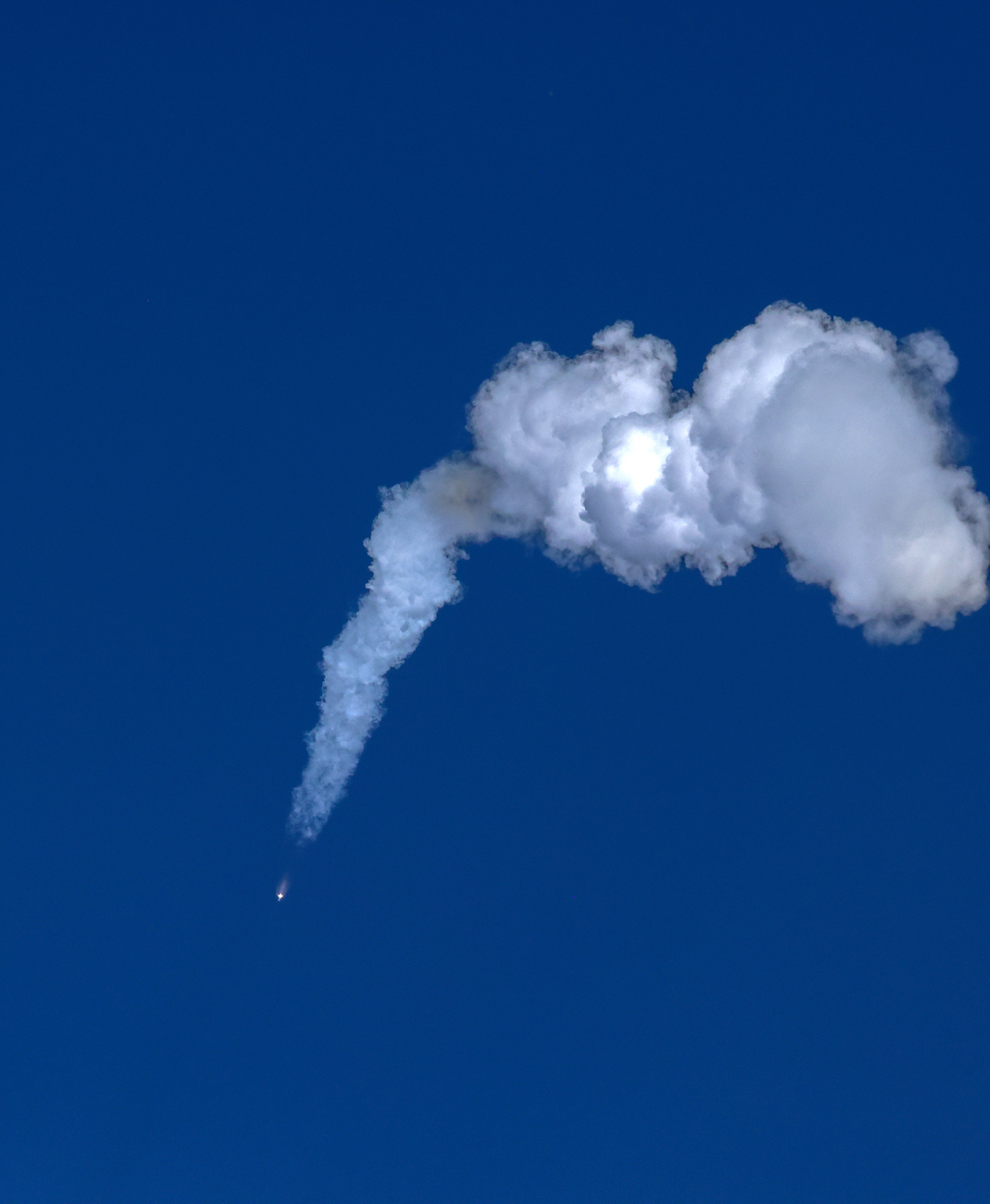 倒计时声中,我透过取景框紧盯着那道即将启程的“白箭”。19时46分,当“点火”的倒计时口令响起,火箭底部喷出巨大火焰,声浪由远及近,如惊涛拍岸,震得胸口发麻。火箭拖着耀眼的蓝色尾焰缓缓上升,逐渐加速,最终消失在蓝天中。四周爆发出持续的欢呼声,我却感到一阵突如其来的失落——仿佛一位朋友远行,急切地盼望着他的归来。