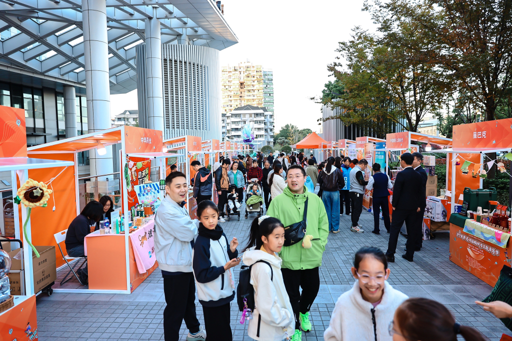 除了热气腾腾的音乐,现场还有从午后热闹到深夜的“沪宁风华”城市文创市集。普陀的非遗美食让青年们流连忘返,他们领略着经久流传的上海风味,吃饱喝足后继续逛苏锦、粽编、绘画、稀有乐器等民间手艺。