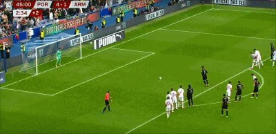 第41分钟,内维斯任意球击垮对手。