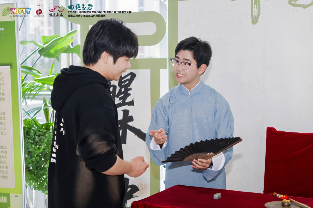 11月16日,上海市嘉定区嘉亭荟城市生活广场内传来浦东锣鼓书《升国旗》的铿锵节奏,2025年上海市民文化节第八届“唯实杯”青少年曲艺大赛暨长三角青少年曲艺优秀节目展演在这里上演。