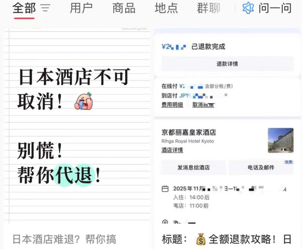 旅客北北(化名)原定 11 月 20 日至 24 日前往日本京都旅行,在家人出于安全考虑的劝阻下,她最终决定取消行程。她告诉记者,其预订的 1575 元往返机票实现了 " 丝滑退款 ",未产生手续费;甚至连预订时标注 " 不可取消 " 的酒店订单,也在 16 日获得了全额退款。