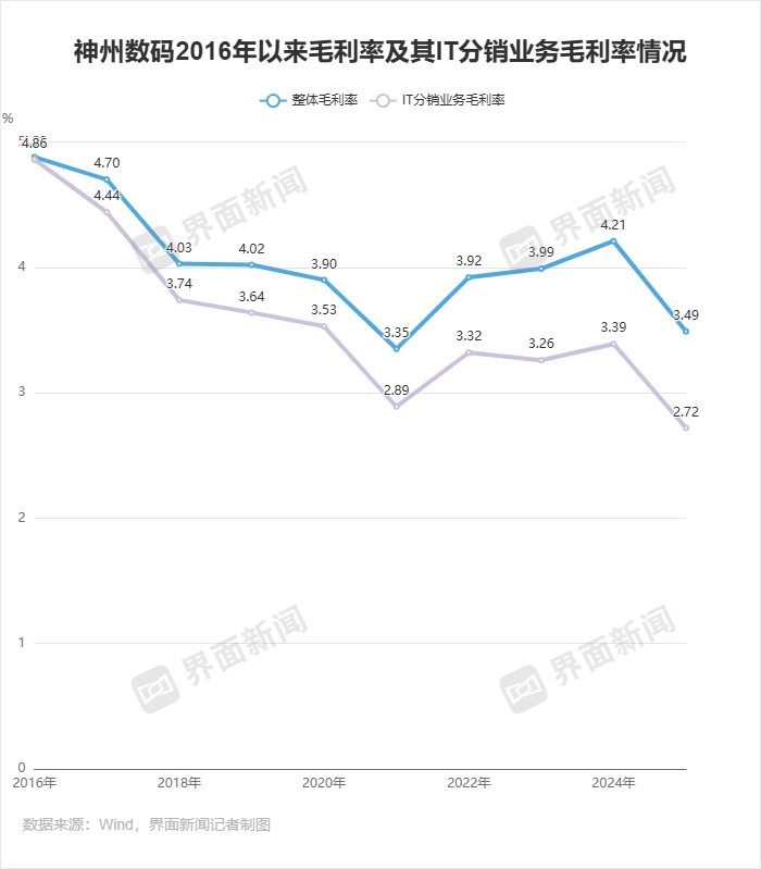 “低毛利率的传统IT分销业务体量比较大,整体毛利率改善进展还不太好说。”神州数码相关人士对界面新闻记者坦言,“传统业务还不能丢掉,只要能赚钱,我们就得积极做。”