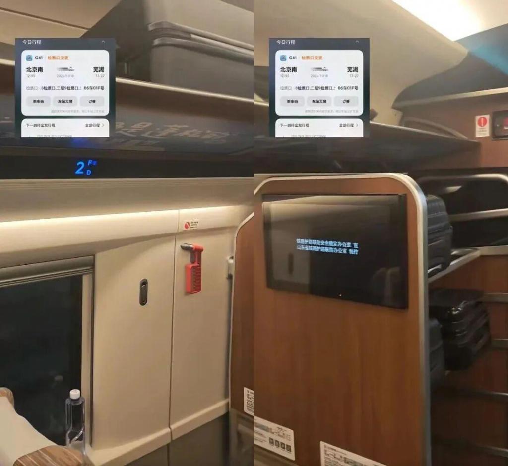 此前据媒体报道,有网友在社交平台发视频称,自己乘坐 11 月 18 日由北京南开往芜湖的 G41 次列车,车票信息显示,座次为 06 车 01F,但上车后发现,06 车厢内并无 01F 的座位。视频显示,列车常见的 01D、01F 的位置被一处行李架 " 代替 "。
