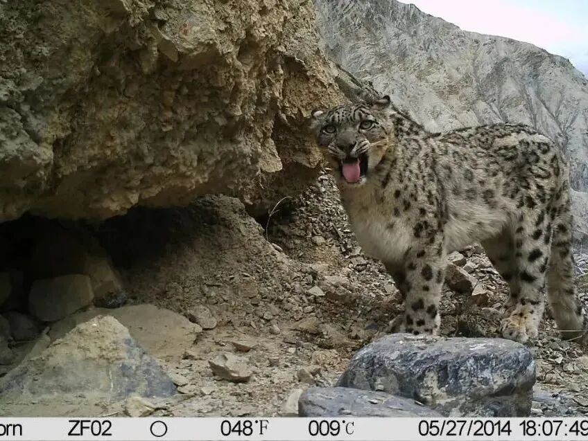2014年在珠穆朗玛峰国家级自然保护区拍摄到的雪豹红外相机照片