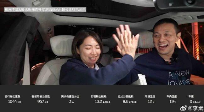 2023 年底,蔚来发布了 150 度半固态电池,本身是一项值得称道的电池技术创新,却引来不少无脑黑。李斌索性进行了一场 14 小时不间断自驾直播,从上海开到厦门测试这块电池的续航能力。一路上和坐在副驾的蔚来能源负责人沈斐谈天说地,除了介绍电池的专业知识,还贡献了不少有趣的名场面。这场 1044 公里的马拉松直播,虽然观看人数不算爆款,却展现了李斌一贯的坦诚和耿直,博得不少好感。