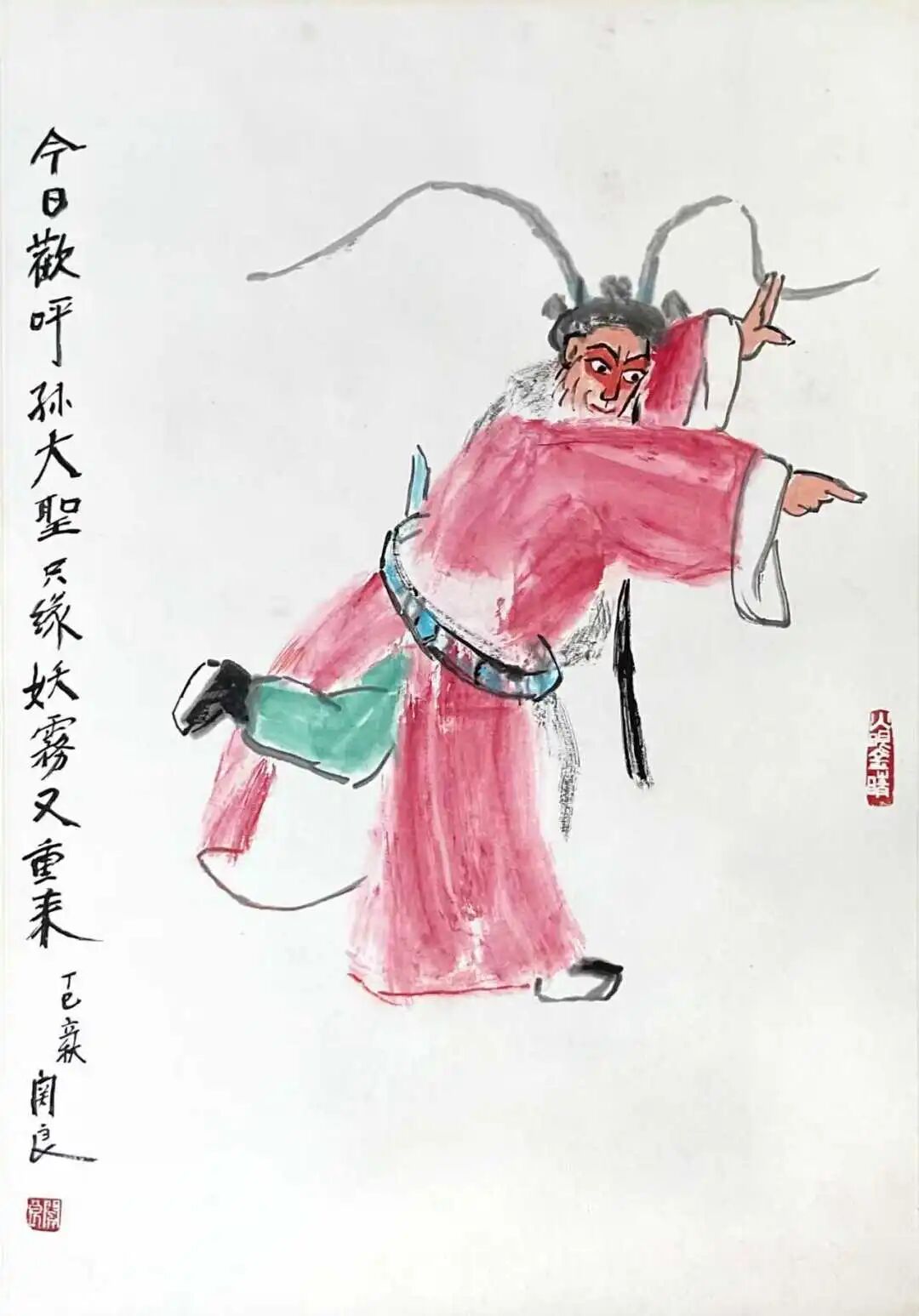 踏入展厅,时间仿佛骤然放缓。这里没有耀眼的舞台灯光,没有喧闹的锣鼓声,只有水墨丹青定格的梨园瞬间:《牡丹亭》、《荒山泪》、《美猴王》、《白蛇传》……中国戏曲经典的瞬间,被从关良、朱屺瞻、韩羽、高马得等开始的14位艺术家的60余幅作品捕捉,凝固为展览中动人传神的画面。
