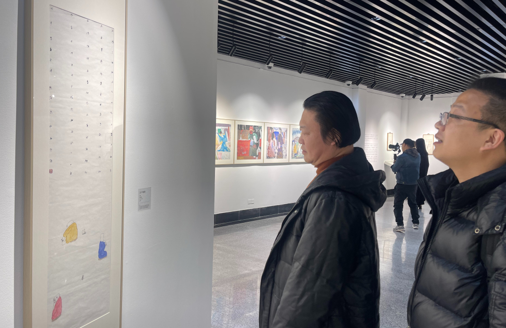 参展艺术家陈九的戏画体悟人生的悲欢离合,透过质朴诙谐的笔势,让画面行走于浓淡、雅俗之间,不仅见形,而是见神。