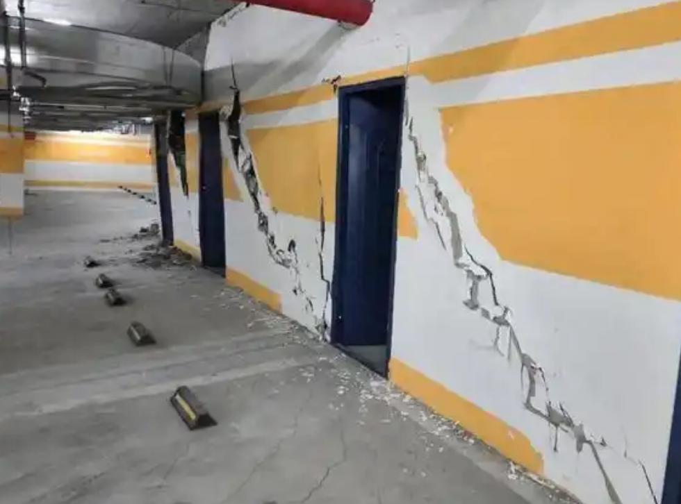 一小区地基下沉,车库多处墙体有巨大裂缝,交房仅两年多,官方通报:该楼安全性鉴定等级为Csu级