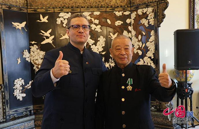 中国网11月24日讯 (记者 白璐) 22日,在俄罗斯驻华大使馆著名的建筑“红房子”内,俄罗斯沃洛格达州州长格奥尔基·菲利蒙诺夫向中国武术协会副主席吴彬授予俄罗斯联邦“友谊勋章”。俄罗斯驻华临时代办谢尔盖·克拉明采夫、俄罗斯武术联合会主席格列布·穆兹鲁科夫以及中国外交部和国家体育总局代表等中国政府部门及体育组织代表出席授勋仪式。