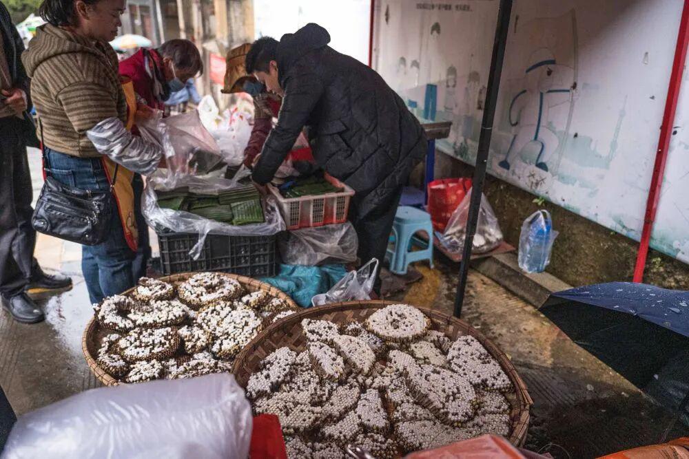 11 月 20 日,商户在云南省保山市龙陵县一处农贸市场内售卖胡蜂蛹。