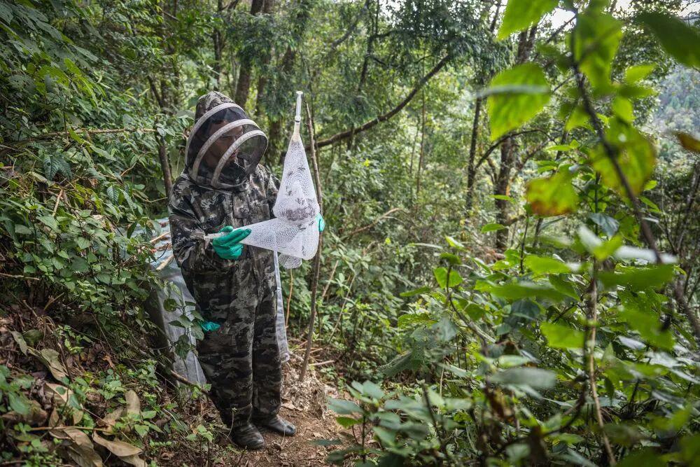 11 月 19 日,在云南省保山市龙陵县龙山镇河头村,一名村民查看野外收集的胡蜂。