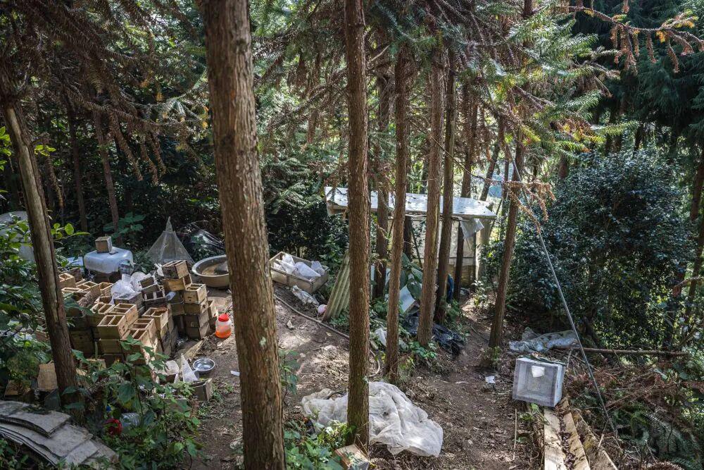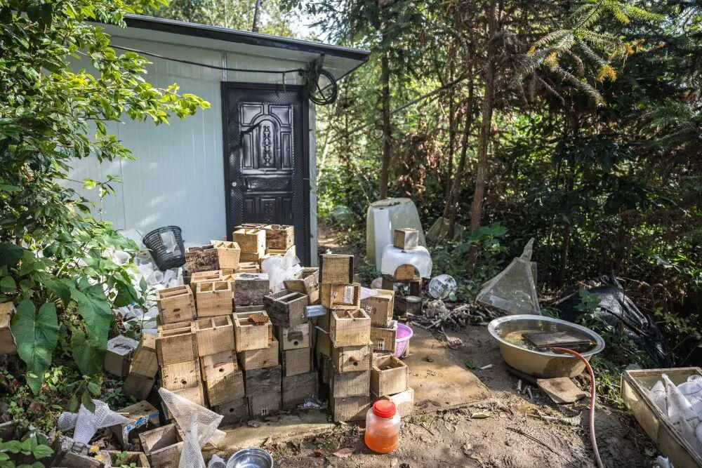 11 月 19 日拍摄的云南省保山市龙陵县龙山镇河头村,村中可见村民在家中、门外棚房养殖的胡蜂。