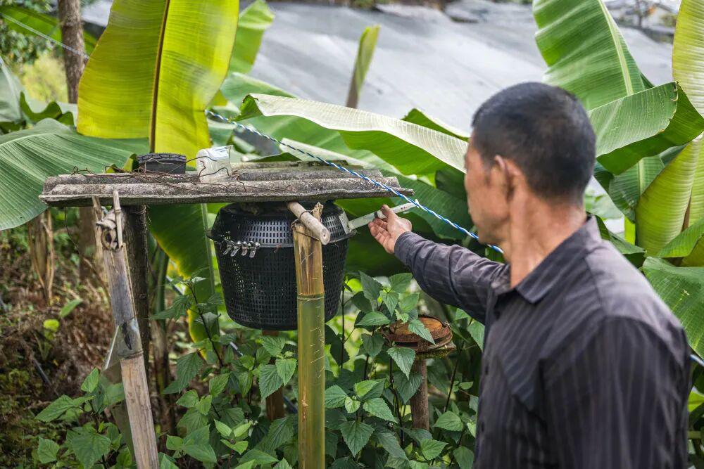 11 月 19 日,在云南省保山市龙陵县龙山镇河头村,村民给胡蜂喂蜂蜜水。