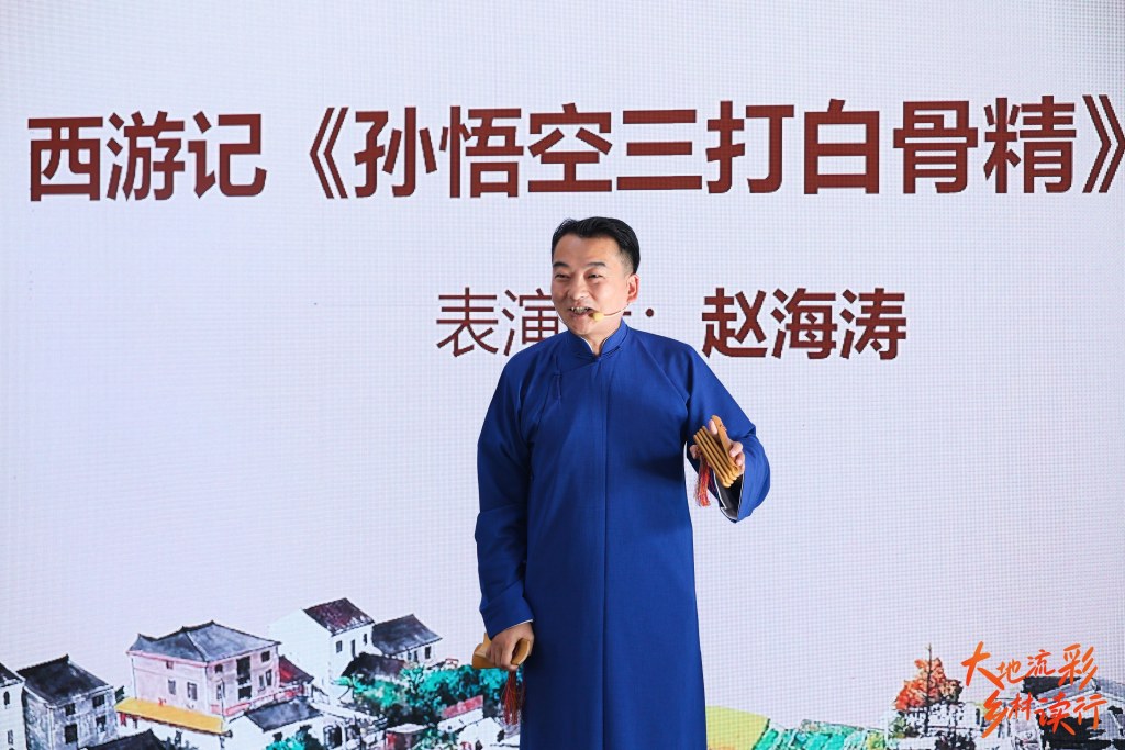 相声、快板书演员赵海涛是一位“跨界”阅读推广人,他长期活跃在嘉定区徐行镇各村的老年日间照护中心。在和乡村老人的聊天交流中,他发觉老人们特别喜欢耳熟能详故事内容。赵海涛就从中国传统文学名著着手,用快板表演四大名著的片段,给老人们说书、讲故事,为他们带来笑声和快乐。
