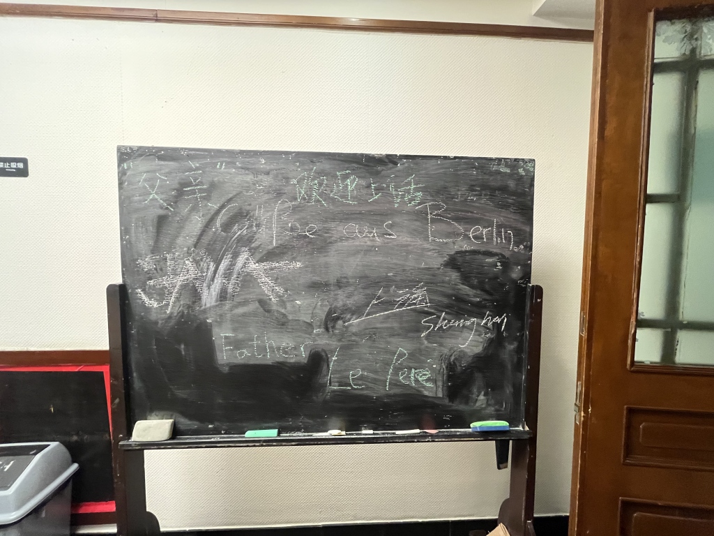 首都剧场后台放置的黑板,惯例是写演出安排,今次特为写上了“欢迎上话”。摄影:王诤