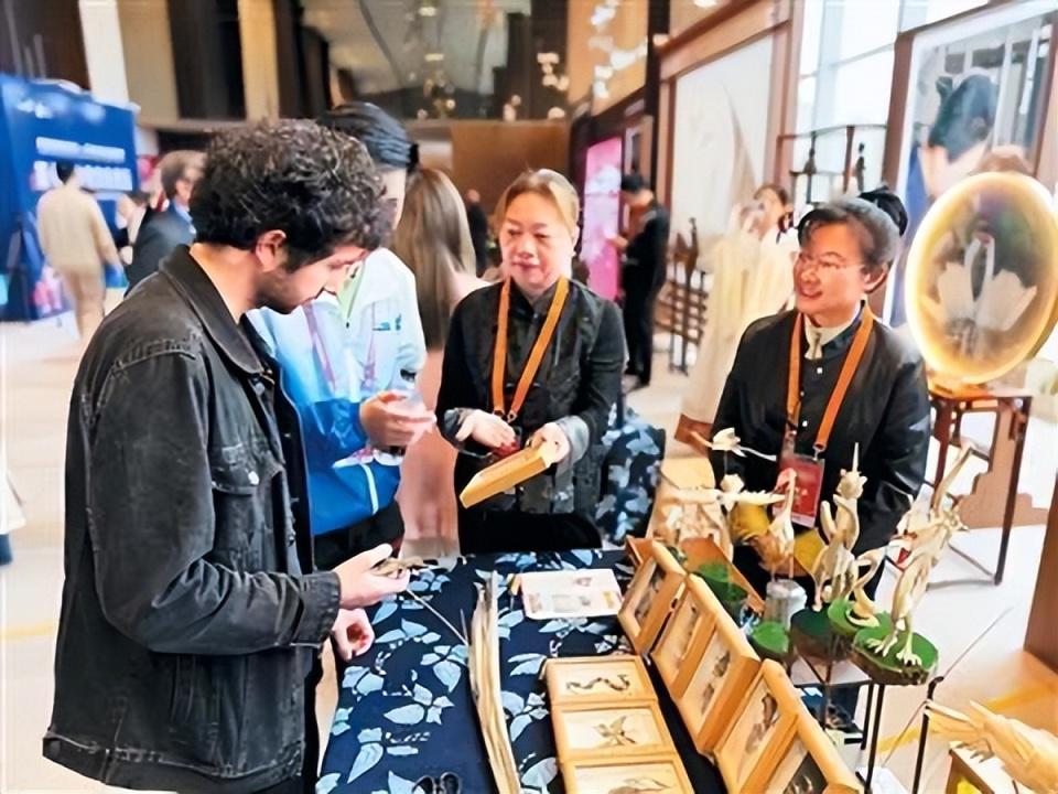 近日,在第七届中法文化论坛期间,法国嘉宾体验湖南非遗草编技艺 图:人民日报海外版