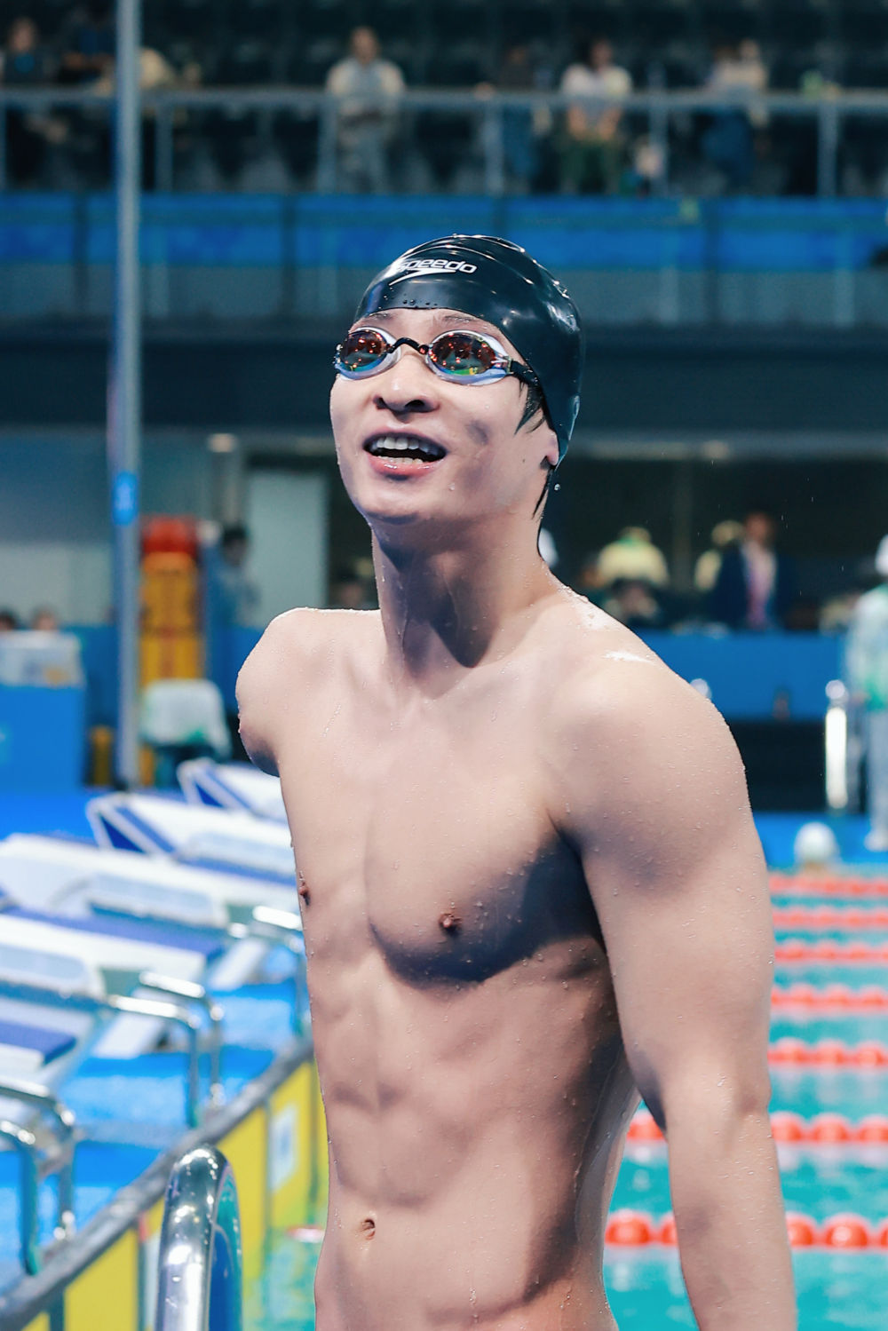 “比完50米自由泳,我的泳镜里已经装满了眼泪。”他说,自己没想到,遗憾的泪水会这么快变成激动的泪水。“我拼尽全力坚持着把100米蝶泳比完,在确定自己获得第一名的那一刻,我特别开心,努力终于有了回报。”