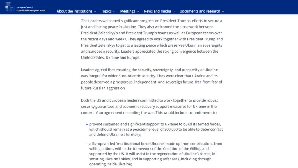 正是在这一背景下,欧洲国家经过数月磋商,选择在立场上向前迈出 " 有限但关键的一步 ",最终形成了由德国、法国、英国、意大利、波兰、芬兰、挪威、瑞典、荷兰以及欧盟机构领导人共同签署的联合声明。这份声明未必意味着欧洲已经达成完全共识,但至少反映出一种现实选择:在无法统一行动的情况下,先统一政治姿态。