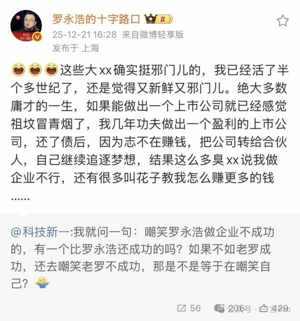 罗永浩还回击了项立刚对他 " 除了直播什么都干不成 " 的评价: