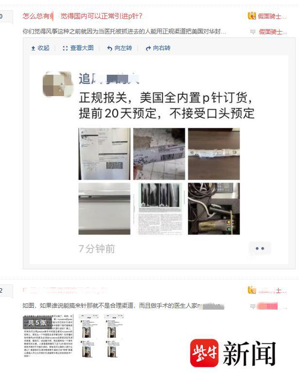 图为网络上有人发布“内置 p 针骨延长”的广告帖子