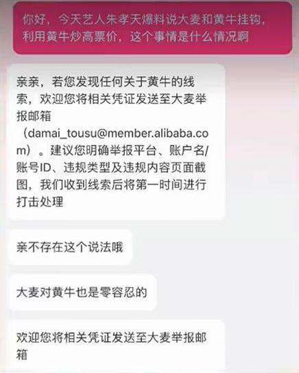 12 月 25 日,有媒体向爆料里提到的大麦了解相关情况,客服回应否认这个说法,称对黄牛零容忍,票价均由主办方根据市场规则制定,大麦作为票务平台严格执行相关规定,不存在与第三方合作抬价的行为。