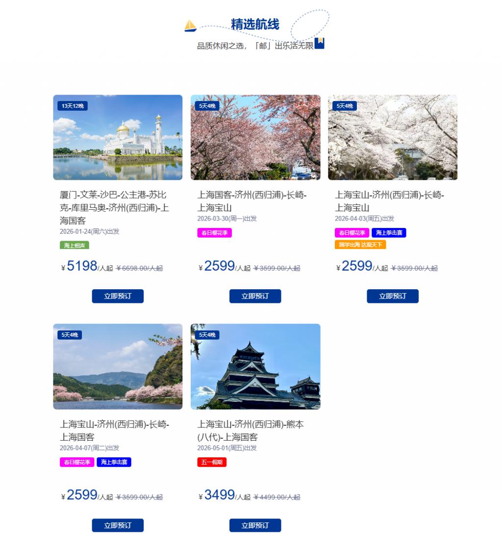 但值得一提的是,在蓝梦邮轮发布停运通知后,官网上依然挂着 2026 年全年航线计划,甚至可以点进去预订。