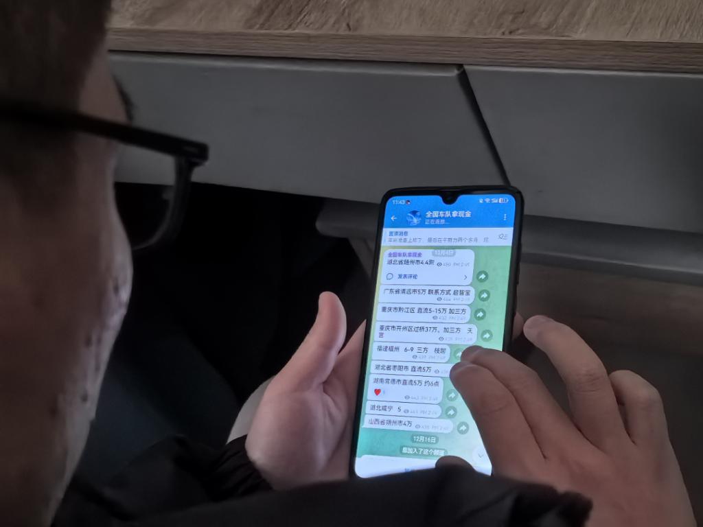 ▲张一文向记者展示境外社交软件上发布的 " 车手 " 招募信息。 新京报记者 李英强 摄