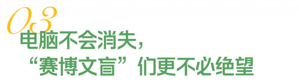 这个时代不缺会使用手机的人。你可以不成为一个精通电脑的大牛、甘当默默无闻的 " 电脑小白 ",但不能成为无知且拒绝电脑的 " 真 · 赛博文盲 "。否则当时代洪流向前推进时,第一个被淘汰掉的便是主动摒弃电脑的人。毕竟,一个能快速接纳新事物的开放头脑,才是最可贵的东西。
