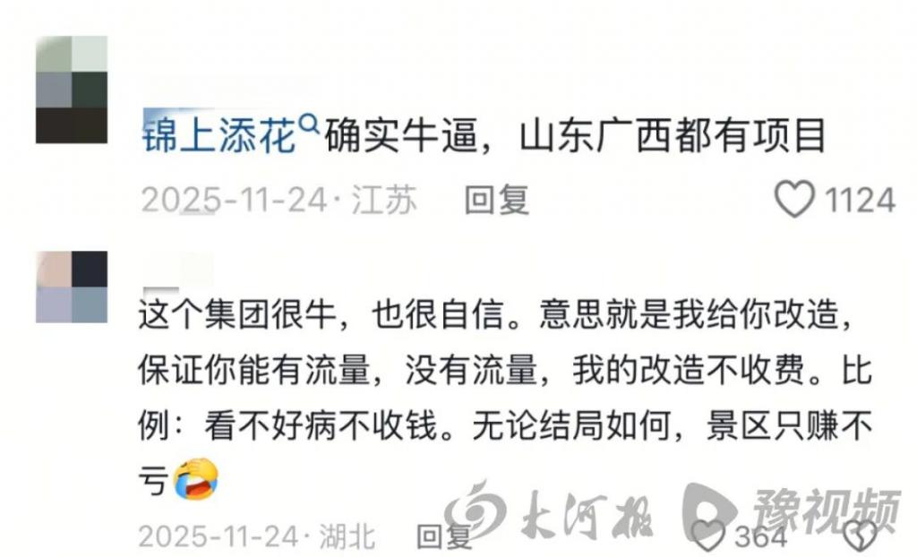 舆论场上,不少网友将目光投向合作方锦上添花文旅集团,称赞其 " 改造不成功则不收费 " 的模式 " 自信又霸气 "。一时间,景区营收的爆发式增长,在舆论中被简单归因于该集团的所谓 " 操盘 ",使得这场合作的真实性质被逐渐掩盖。