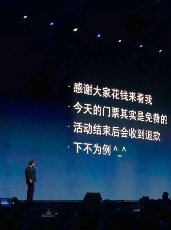 当时大家都觉得,这是罗永浩为了平息迟到引发的众怒,临时做出的补救措施。毕竟门票规则里写得明明白白 " 实名制、不退票、不选座 "。