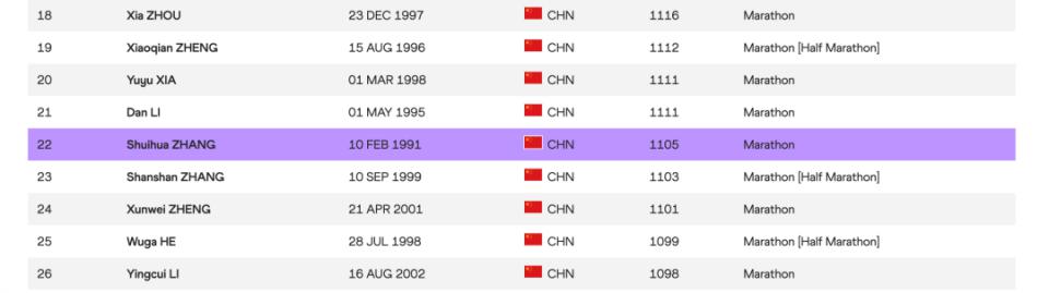 多家跑步自媒体统计的 2025 年女子马拉松选手成绩中,张水华以 2:30:38 的成绩排名第 17。在国际田联官网上中国女子马拉松 2025 年成绩排名中,张水华以 1105 的积分排名第 22。