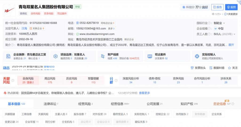 至此,父子二人彻底决裂。这场父子反目并非突发,其核心矛盾在于控制权早已旁落。矛盾的种子埋于 2022 年,当时由儿媳徐英控股 80% 的 " 青岛星迈达工贸有限公司 " 通过增资,拿下了双星名人 56.96% 的股份,成为第一大股东。创始人汪海虽然名义上保留了职位,但实际上失去了对公司的绝对控制。