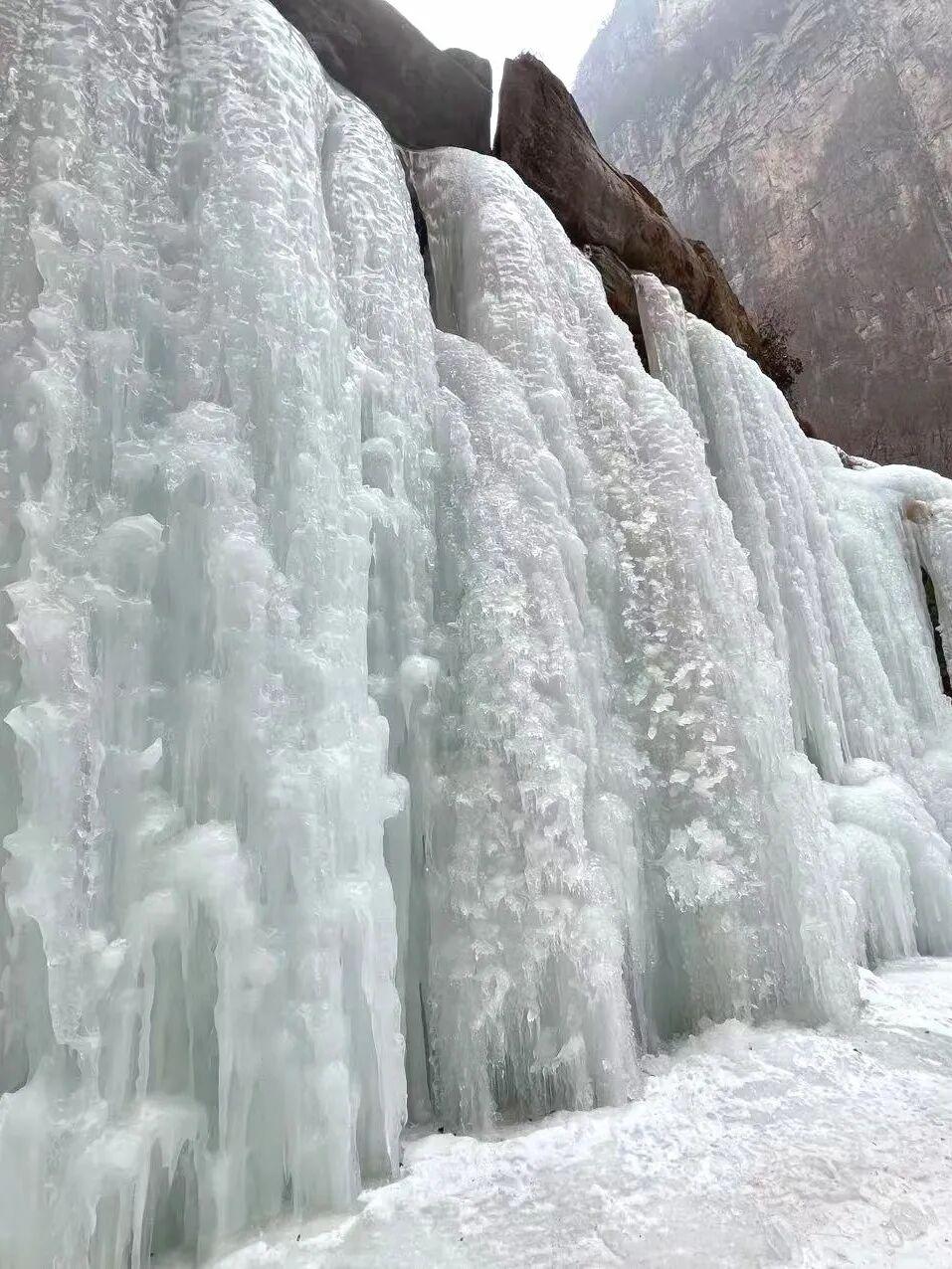 冬季,百米冰瀑的冰流垂直入湖,漫山雾凇苍劲挺立,山顶的云海翻涌一眼望不到边;夏季,飞瀑鸣涧树木葱茏,红岩绝壁清泉潺湲,雄伟壮观与灵动秀美在太行山融合得恰到好处。