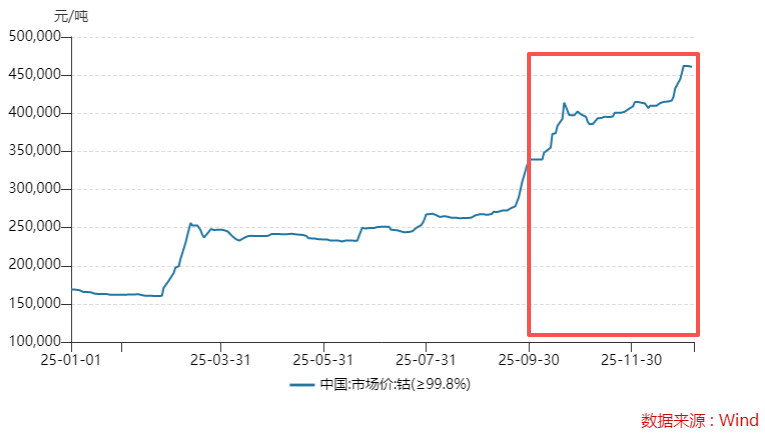 东吴证券认为,当前钴价进一步上涨至45万/吨,预计2026年这一业务有望为华友钴业贡献30亿-40亿元利润。